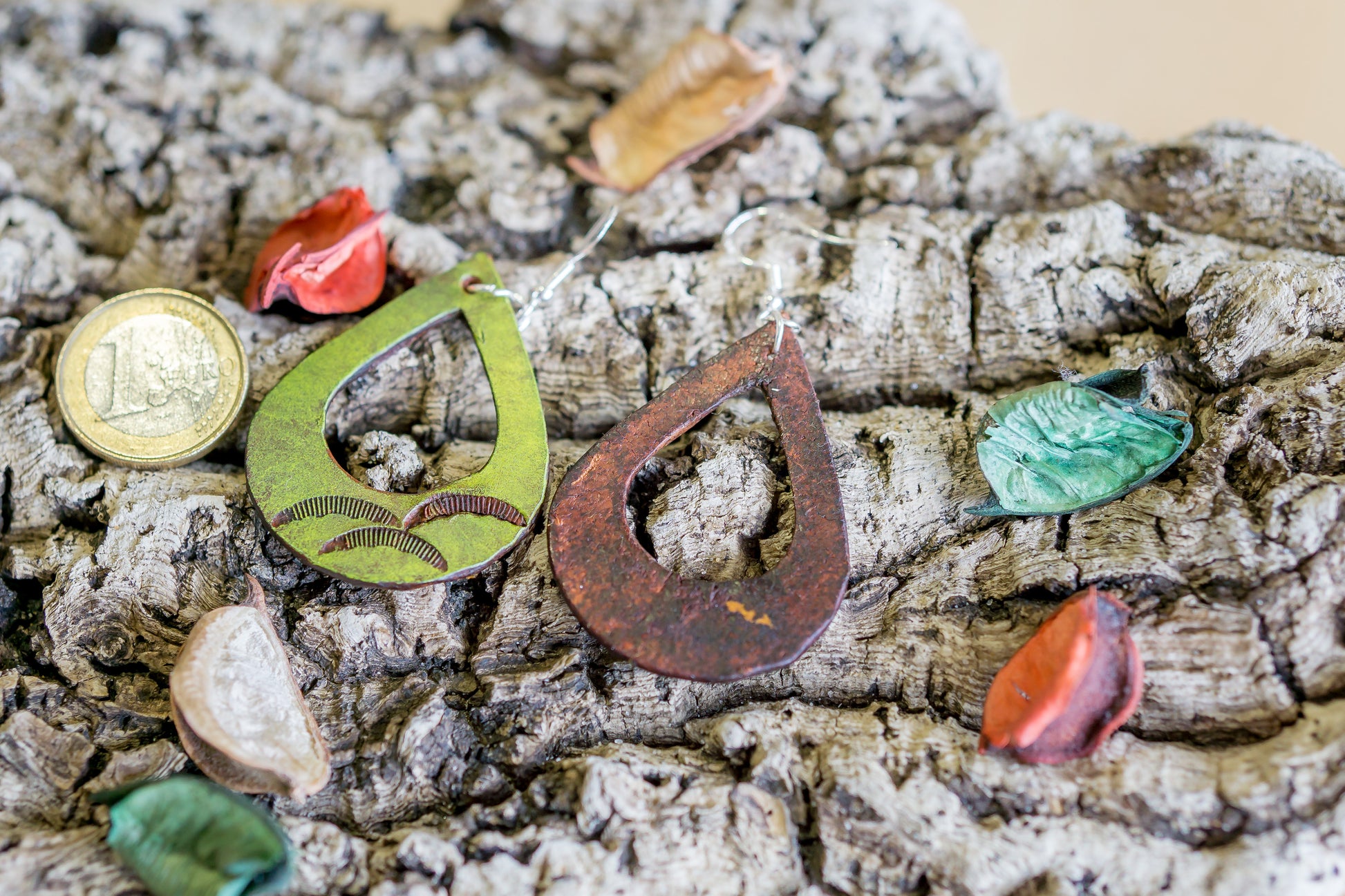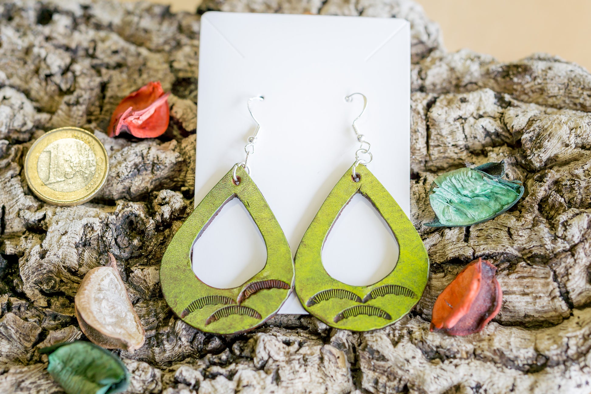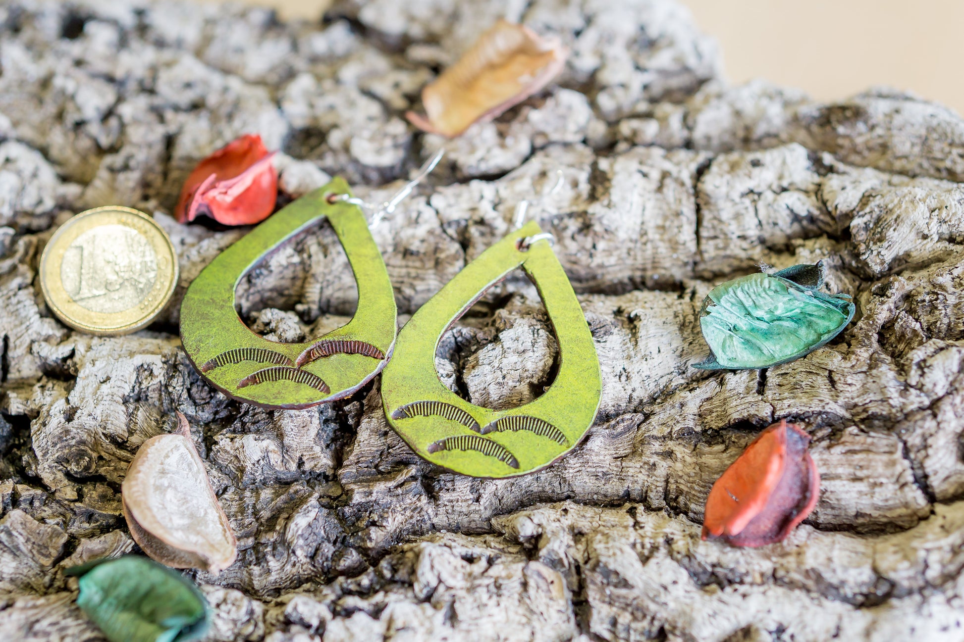 Brincos de couro feitos à mão. Couro de qualidade, curtido de forma tradicional. Feitos manualmente com todo o cuidado e atenção, refletindo-se em cada detalhe. Cada peça é trabalhada manualmente com um design vintage exclusivo e pintada à mão. Os fechos são banhados a prata. O couro envelhece lindamente, ganhando pátina com o uso. Torna-se mais suave ao toque e assume as marcas de uma peça de joalharia amada e usada ao longo do tempo.