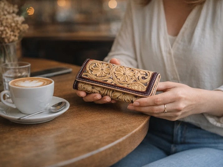 Discover the artisanal elegance in every detail of this stunning leather wallet for women.