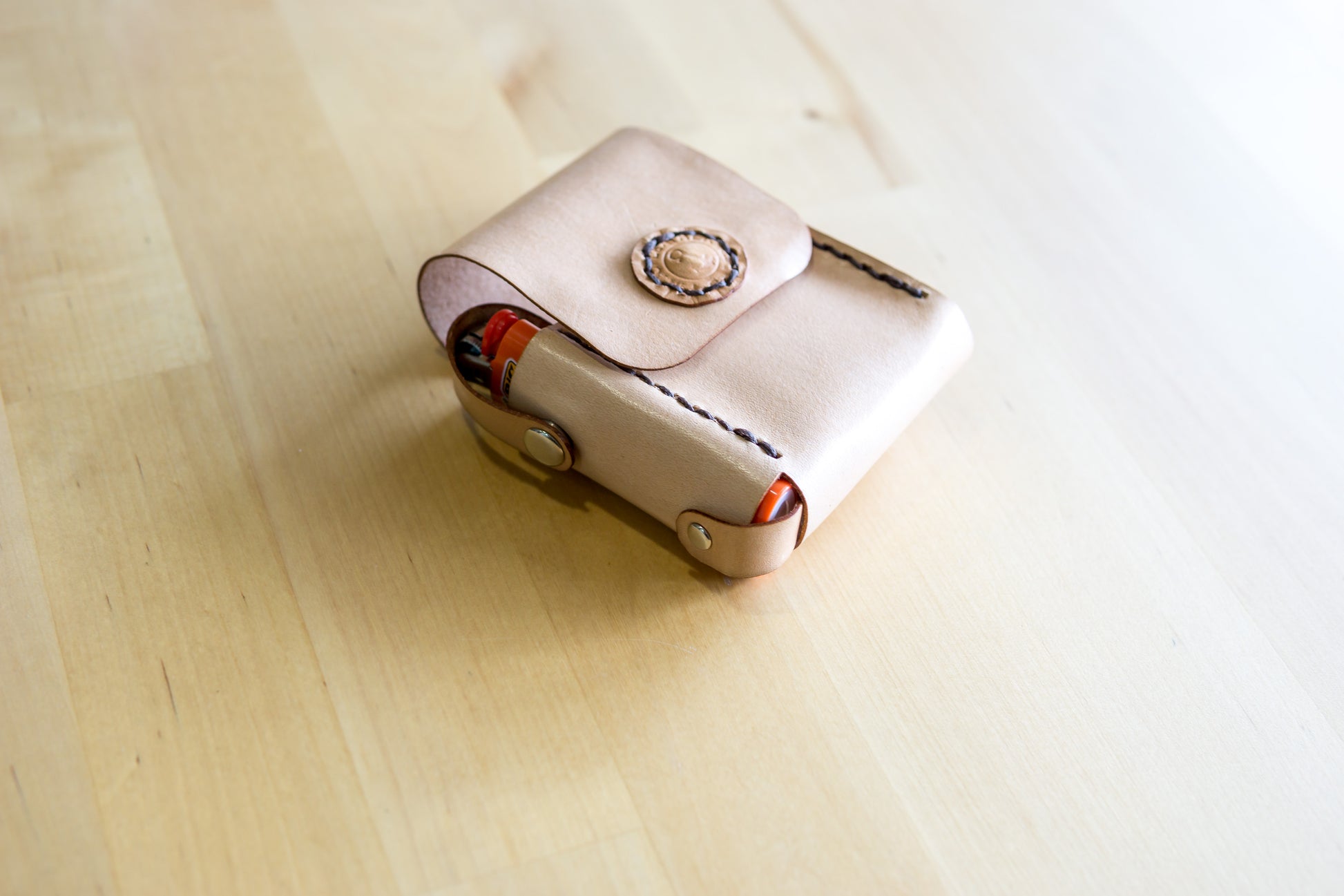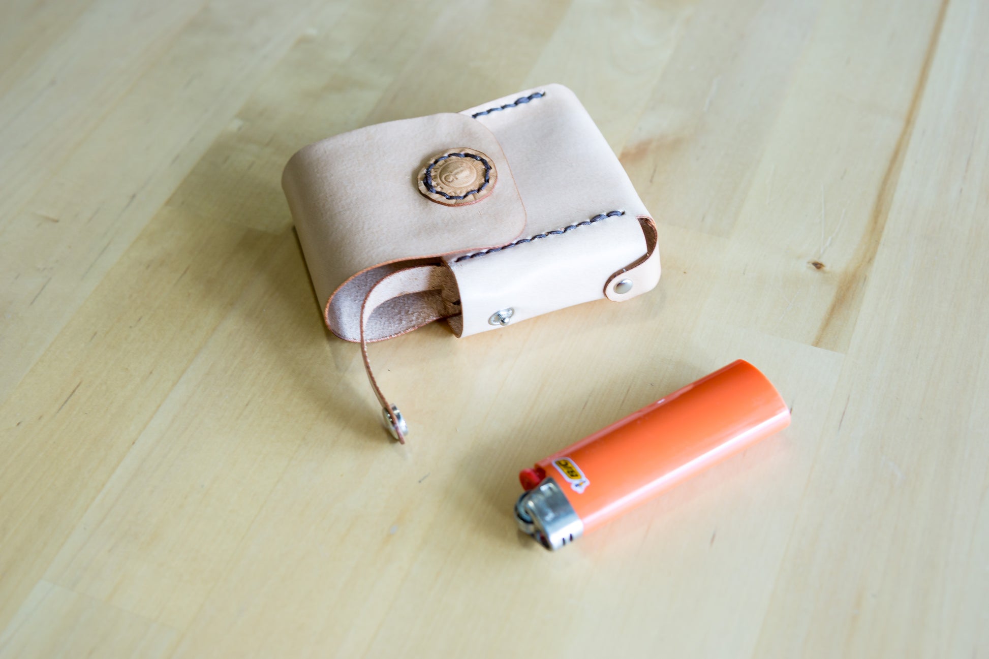 Porta-Cigarros em Couro Natural com Porta-Isqueiro | Feito à Mão
