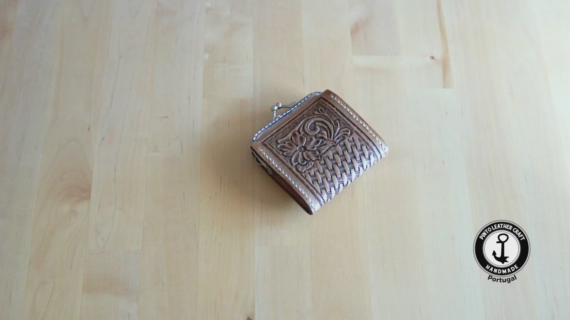 Porta-Moedas em Couro Vegetal com Flor Clássica Carved à Mão – Feito em Portugal