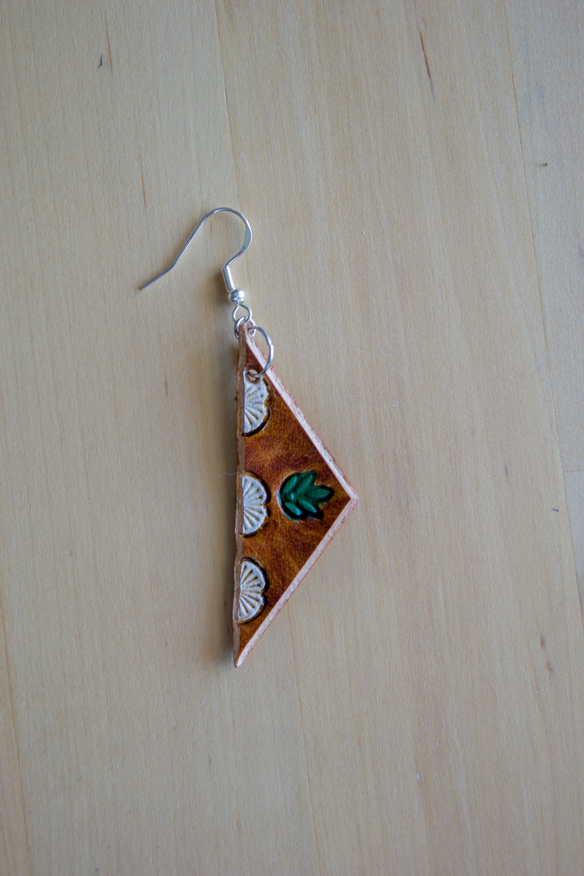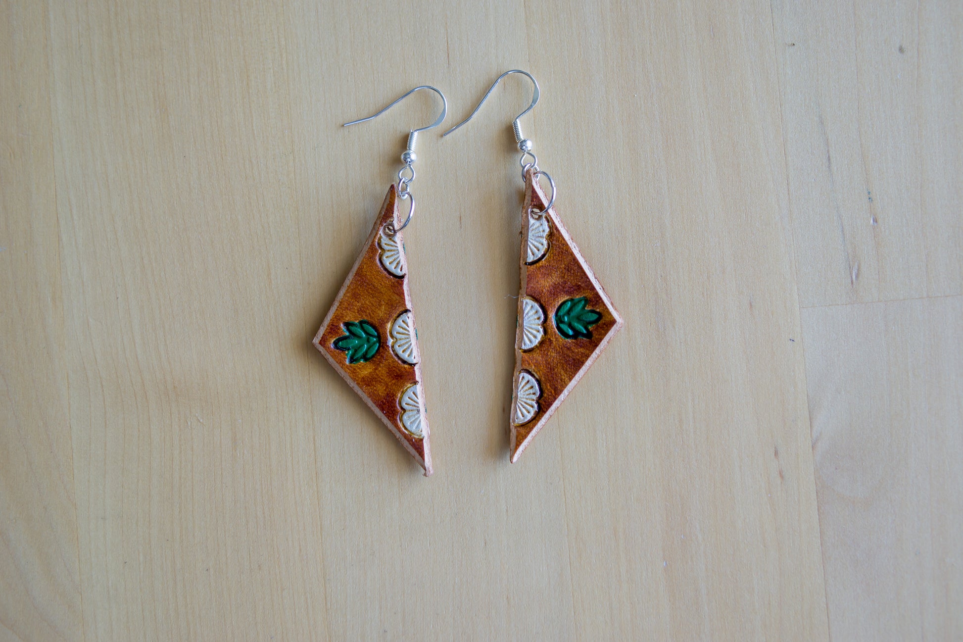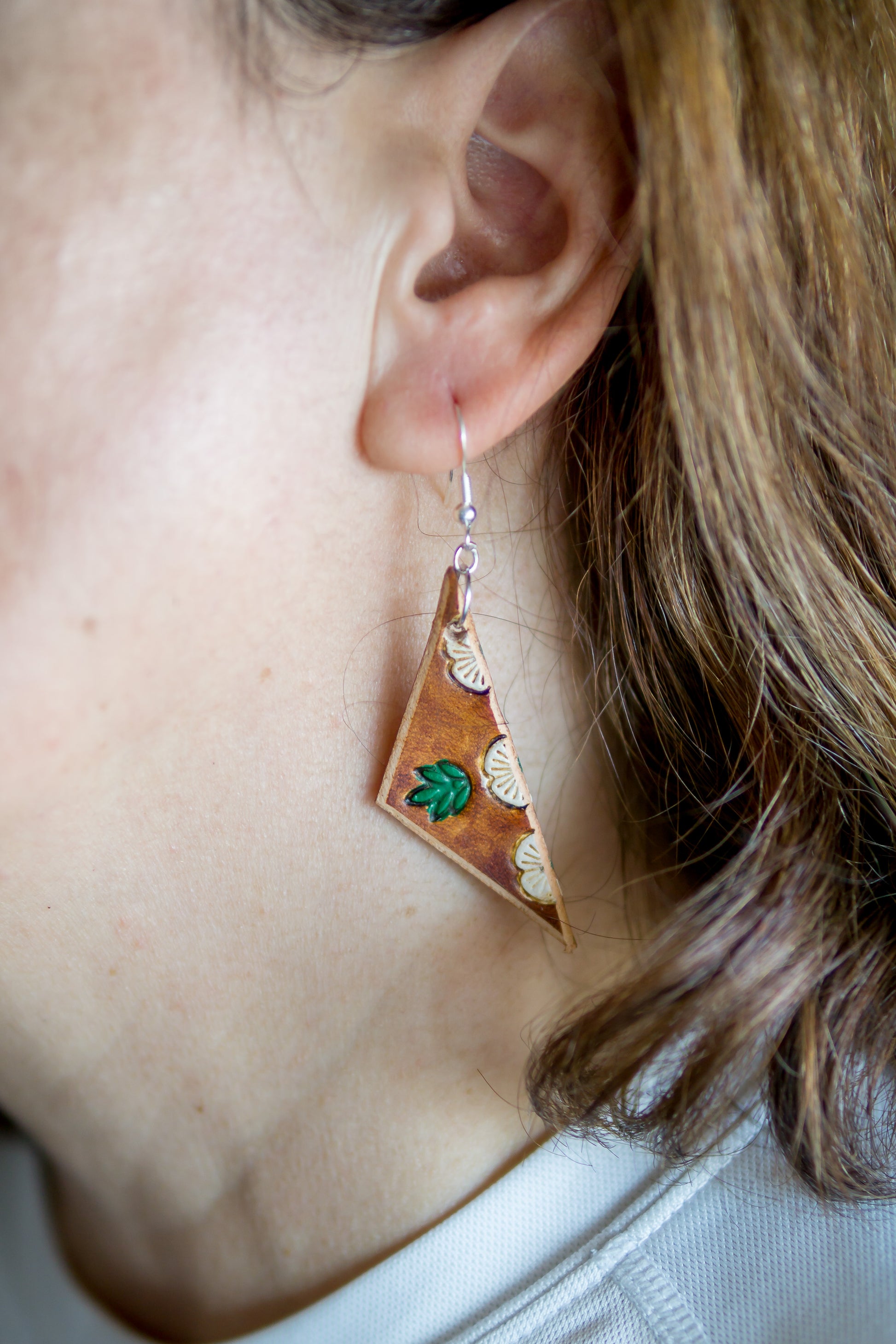 Brincos Artesanais em Couro - Modelo Geométrico Folha Verde