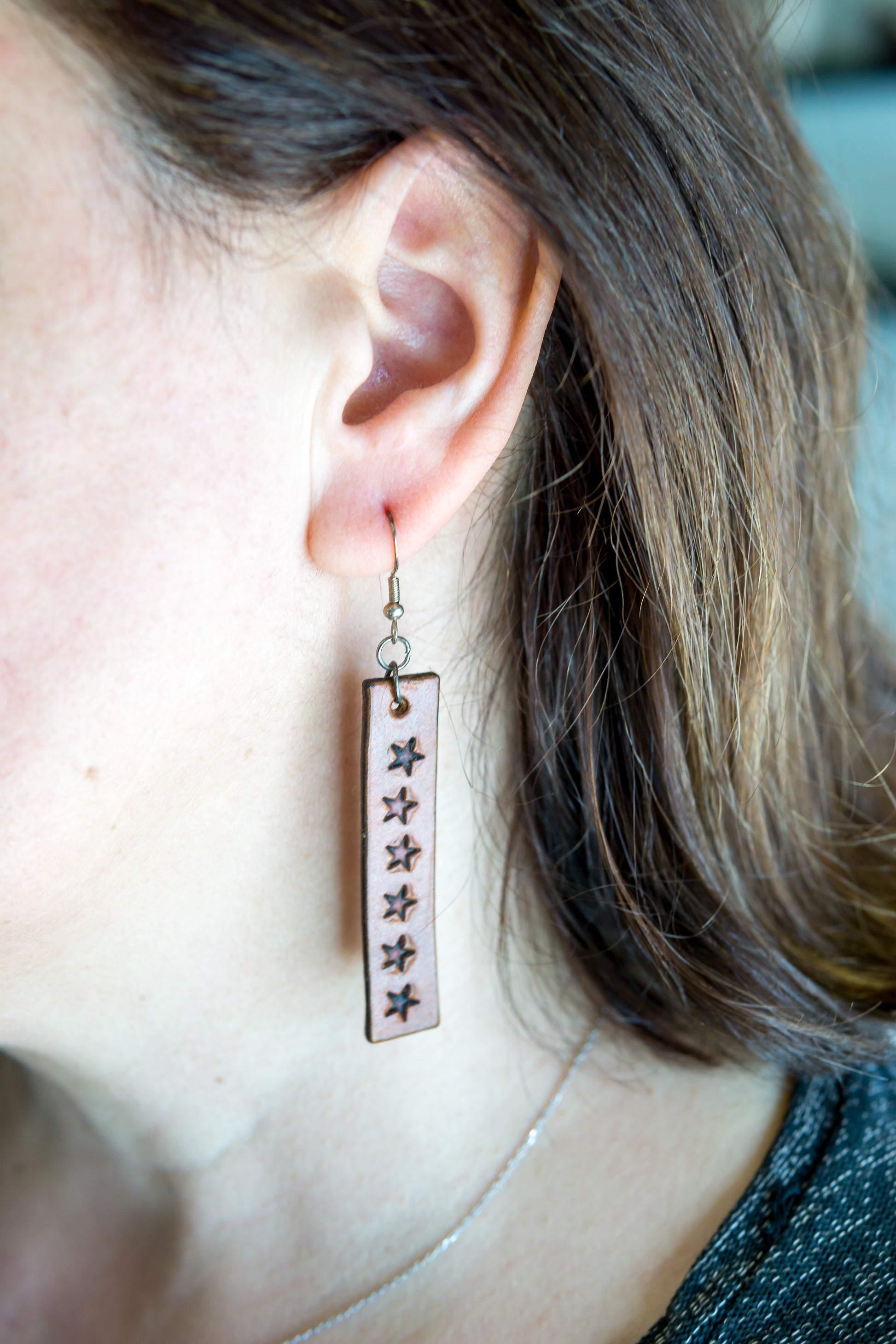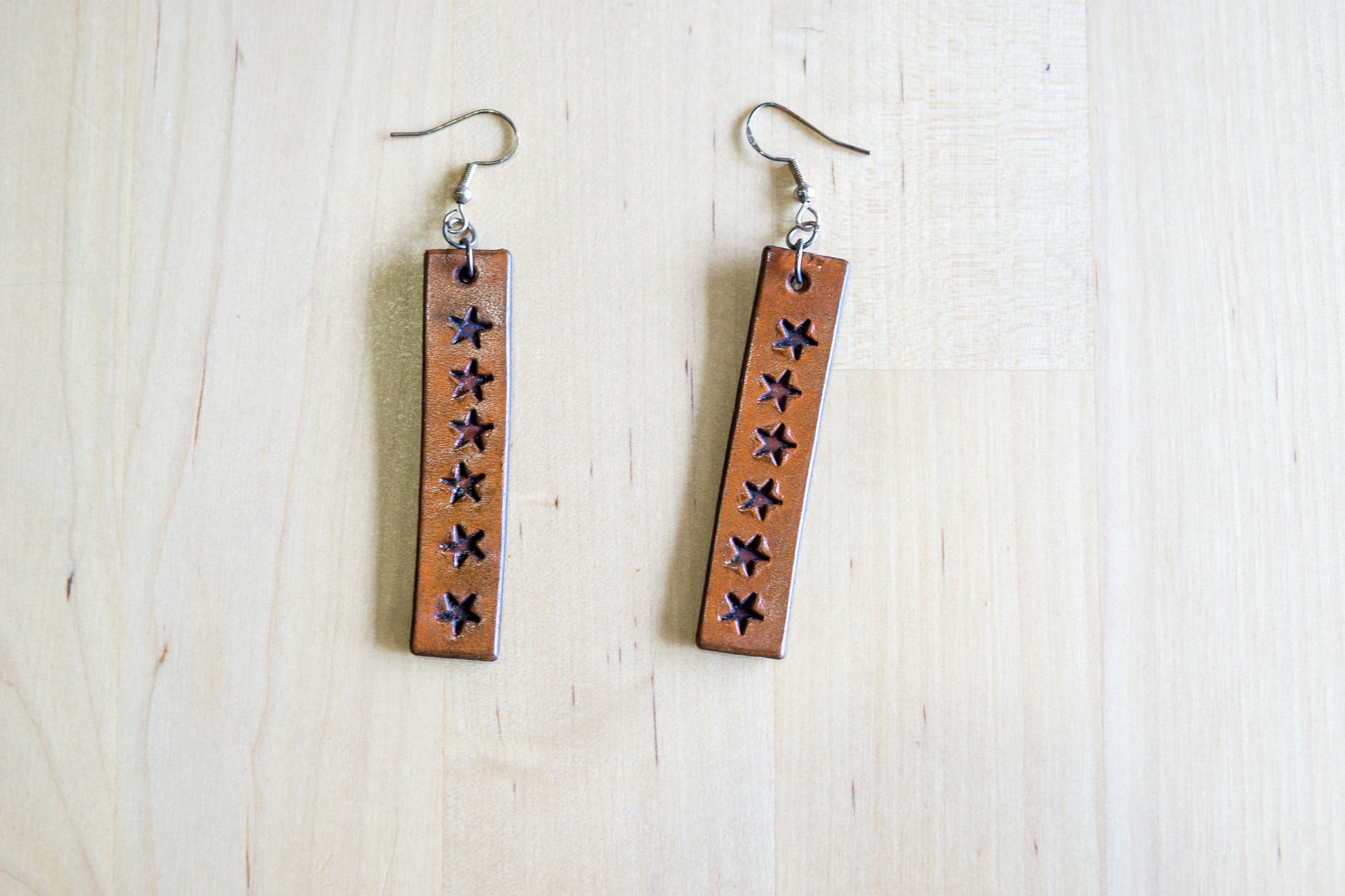 Brincos de couro feitos à mão. Couro de qualidade, curtido de forma tradicional. Feitos manualmente com todo o cuidado e atenção, refletindo-se em cada detalhe. Cada peça é trabalhada manualmente com um design vintage exclusivo e pintada à mão. Os fechos são banhados a prata. O couro envelhece lindamente, ganhando pátina com o uso. Torna-se mais suave ao toque e assume as marcas de uma peça de joalharia amada e usada ao longo do tempo.