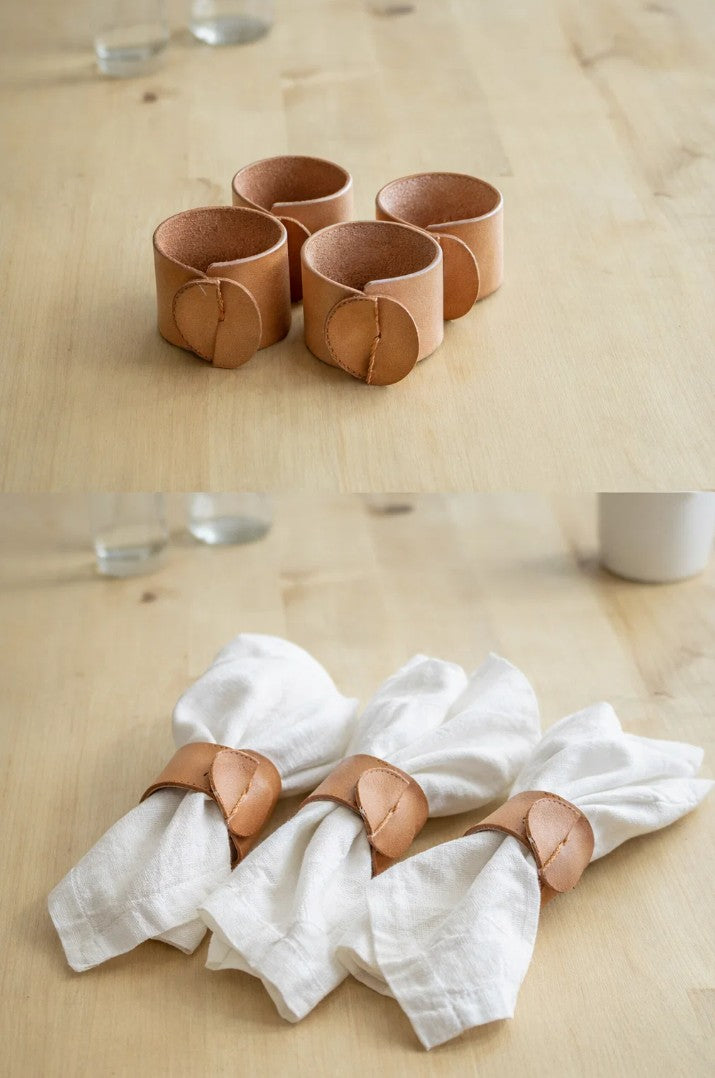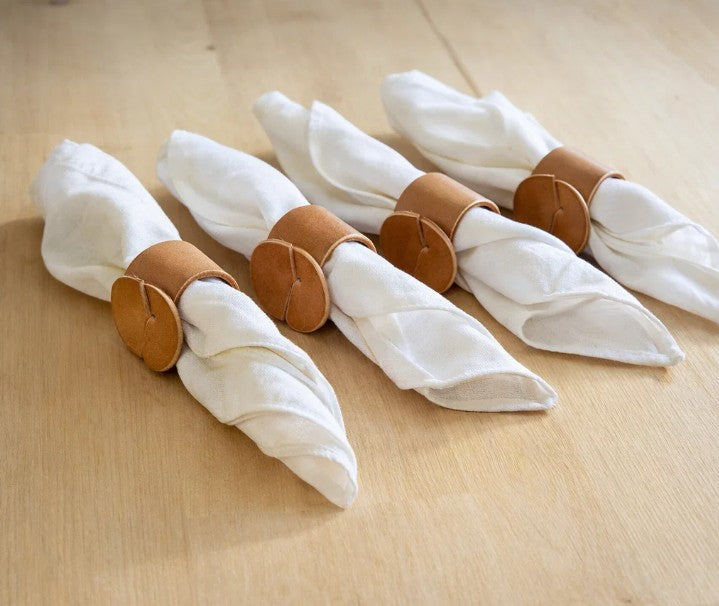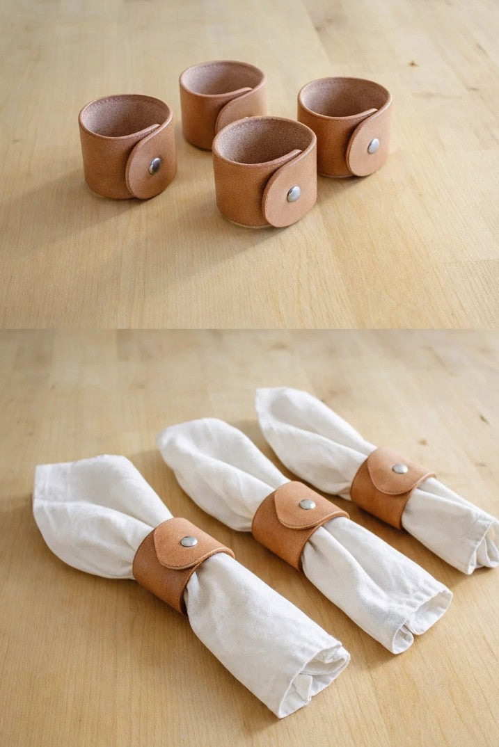 Ajoutez une touche spéciale à votre table avec nos ronds de serviette personnalisés, fabriqués à la main à partir de cuir de sellier végétal de qualité.